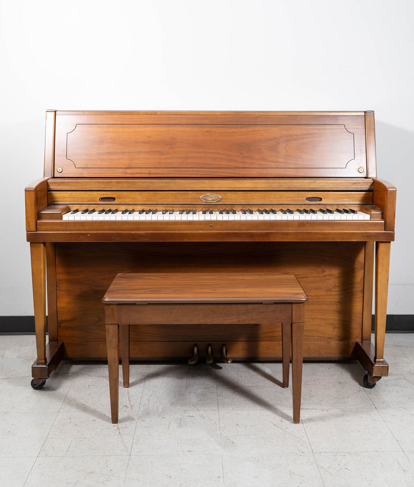 This 1982 Wurlitzer Model 2960 upright piano offers a reliable and compact design, perfect for homes, students, or practice spaces. Built with Wurlitzer's reputation for durability and approachable tone, this instrument provides an excellent balance of playability and value. Its traditional styling makes it an attractive addition to any room. This piano has been well cared for and remains in good playing condition with minor cosmetic damage attributable to age. The matching bench is included.