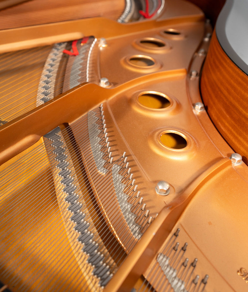 The CS Series features Yamaha's high-quality spruce soundboard, designed to maximize resonance and projection, giving the piano a singing treble and rich, rounded bass. Its action is crafted with Yamaha's signature all-wood components, delivering a smooth, consistent touch that supports nuanced playing, dynamic control, and long-term reliability. The carefully scaled design contributes to a full tone despite its size, maintaining clarity even in demanding passages.