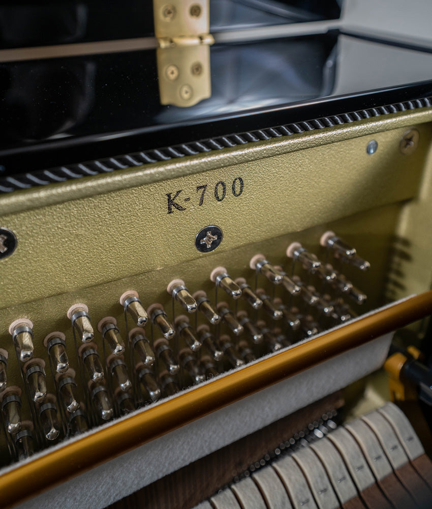 The solid spruce tapered soundboard, mahogany-core hammers, and fore-duplex scaling produce a rich, dynamic tone with remarkable clarity and sustain. Built with long-term reliability in mind, the K-700 includes die-cast action brackets, reinforced keybed construction, and a soft-close fallboard.